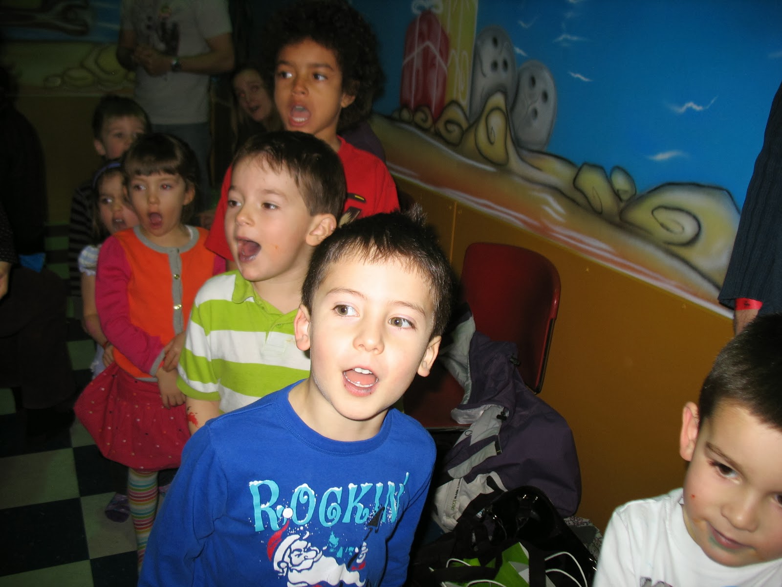 Saturday was uneventful, in that there were no birthday celebrations, but Sunday picked up again, when we all went to (God help us) Cosmic Adventures for a few hours of running-jumping-chasing-playing, sugar, billions of overexcited children and ding-ding-ding-dingity-ding. We will never be able to give him a better birthday party, so we took (not enough) photos.